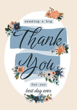 When your wedding journey is complete, thank your guests for attending and for any gifts that you received with personalised thank you cards! We recommend sending thank you cards 1-3 months after the day, as this gives you time to settle down into married life and go on your honeymoon first.