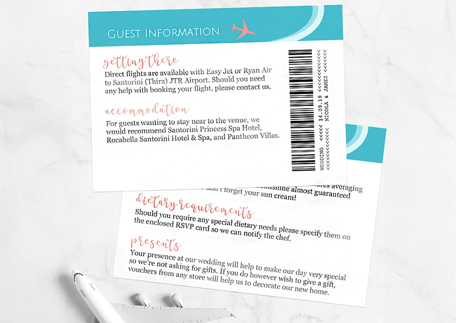 Last updated: December 19th, 2025 Published on: May 1, 2019Your wedding invitation information is essential for helping guests prepare for your big day. Your wedding guest information cards are generally sent alongside a formal wedding invitation and include all the important details that can’t fit onto your invites.