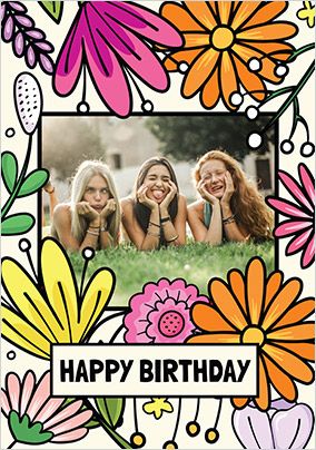 Happy Birthday Floral Photo Upload Card