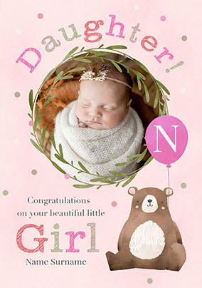 It's A Girl New Baby Photo Upload Card - Winter Wonderland