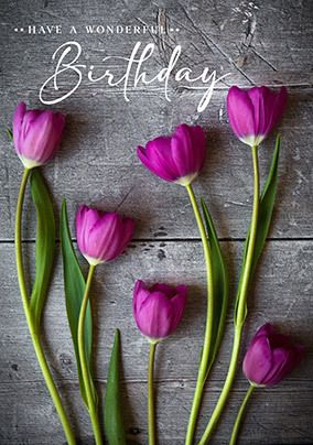 Pretty Purple Flowers Birthday Card