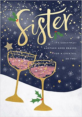 Sister Festive Fizz Christmas Card