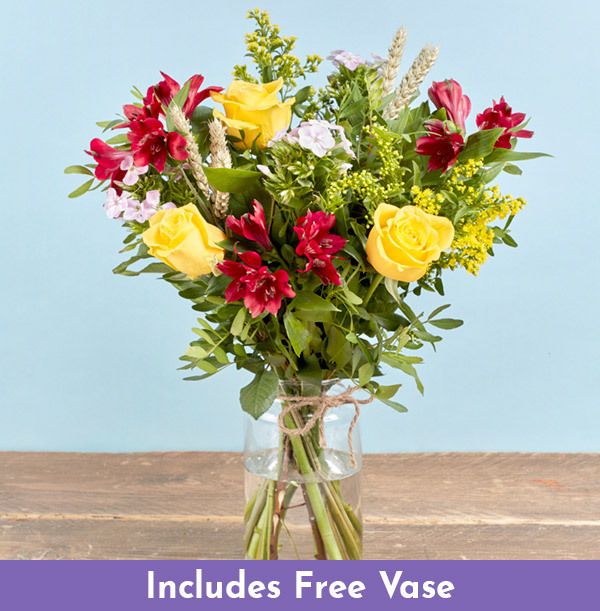 Send the perfect gift with this beautiful bouquet with free glass vase, guaranteed to make any loved one smile.