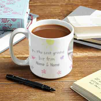 Each personalised mug holds approximately 300ml. All our personalised mugs are lovingly made using high-quality ceramic for a fantastic result, which is dishwasher and microwave friendly. Why not upgrade to add a splash of colour to the inside and handle with our coloured inside mugs?