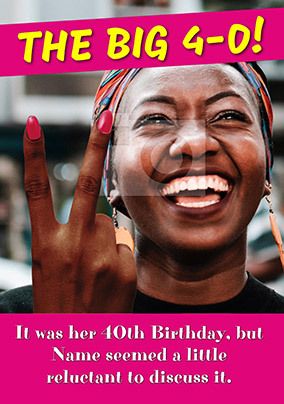 Wish someone a Big Happy 40th Birthday with this fun photo upload card from the range at Emotional Rescue.