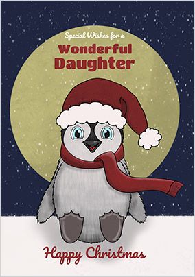 Happy Christmas Illustrated Penguin Lovely Daughter Card