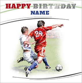 Red and Blue Stripe Personalised Football Shirt Birthday Card