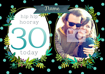 Neon Blush - Birthday Card 30 hip hip hooray Photo Upload