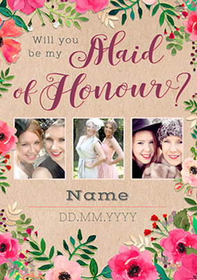 Upload photos from your device and customise the name and date to create a unique card for a Maid of Honour on your Wedding Day.