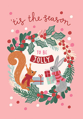 Season to be Jolly Squirrel and Rabbit Christmas Card