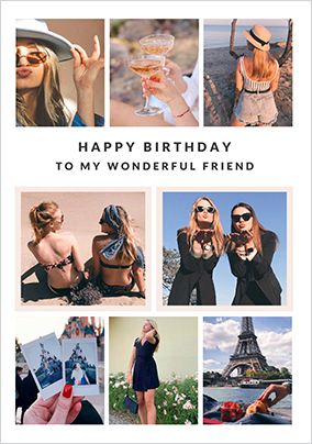 Create a beautiful personalised photo card with this eight photo collage idea from our designers at Funky Pigeon.
