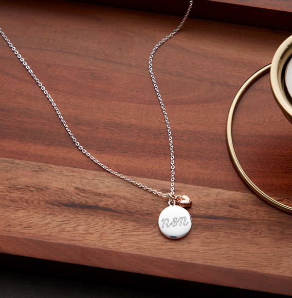 Two Initials & Date Heart Charm Necklace - Personalised