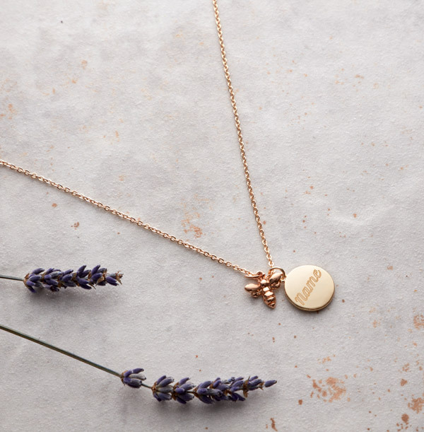 Initial & Date Bee Charm Necklace - Personalised