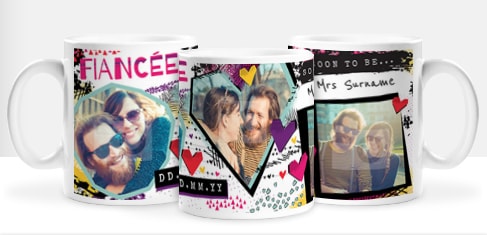 Create a sweet and unique gift for your fiancee with this multi photo upload mug from Funky Pigeon.