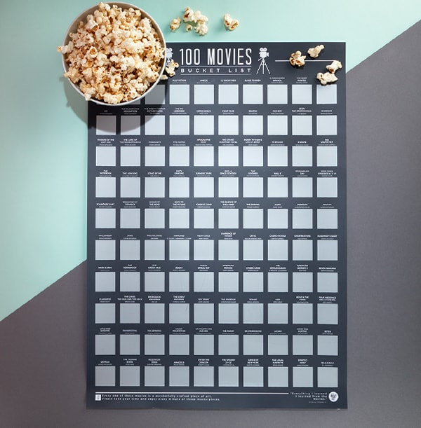 This poster compiles 100 of the best films ever made from around the world. This beautiful poster allows you to scratch the title off as you watch the film, unveiling a powerful image related to the film. How many have you seen?