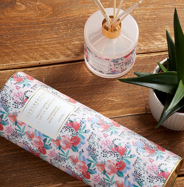 Fill your home with the delicious scent of Passionfruit & Lotus Blossom. Beautifully unique packaging with funky designs and modern patterns.